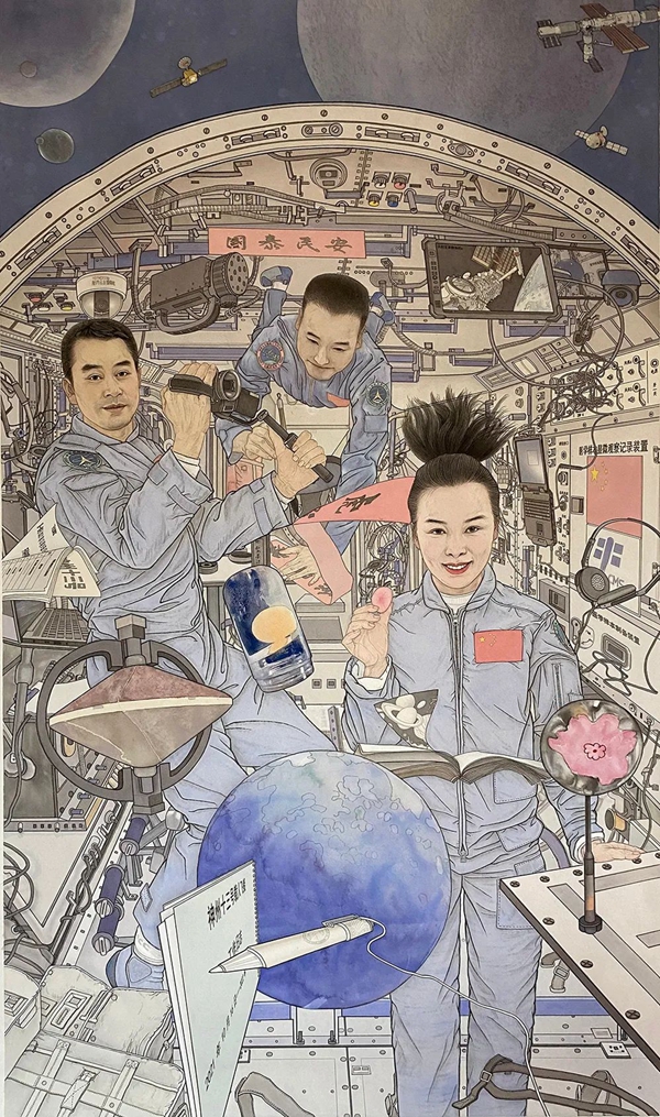 《太空课》 安佳、赵岳 中国画