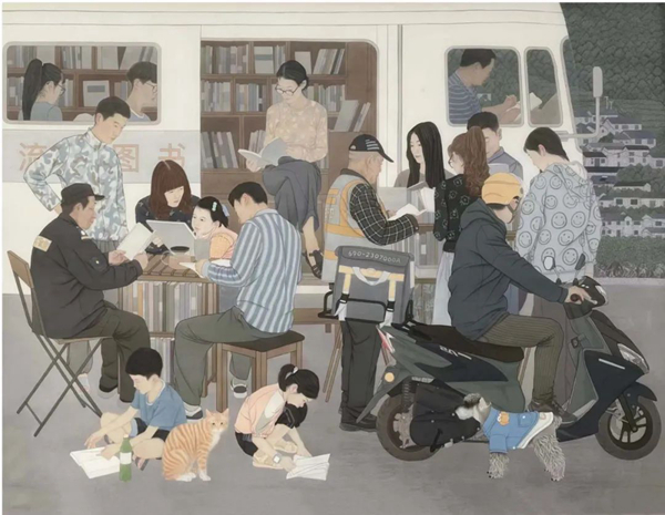 《书香飘村镇》 梁文博、赵鹏、宋欣 中国画