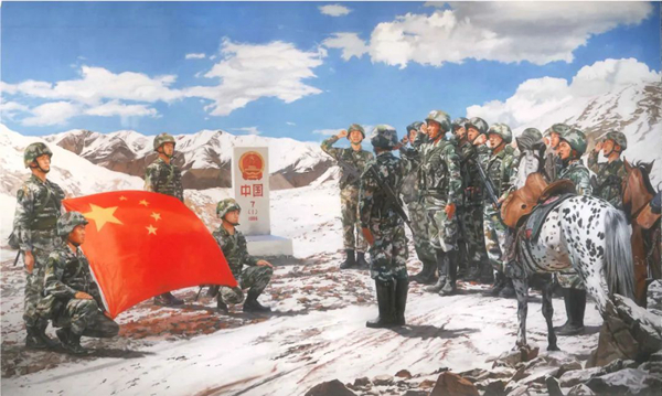 《戍边誓言》 李卓、刘子平、牟达器、李淘然、丁永升 油画