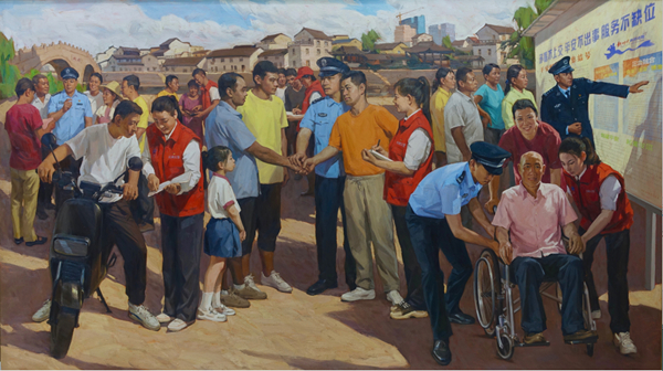 《基层治理的样本——枫桥经验》 陆琦、靳庆金、方经纬、金丹 油画