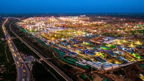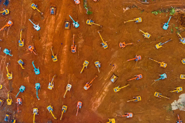 2020年1月24日,湖北省武汉市火神山医院在抓紧建设中。新冠肺炎疫情暴发后,当地仅用10天时间建成火神山医院、12天建成雷神山医院。黄蕾 摄
