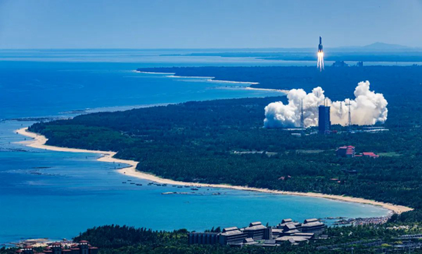 2022年7月24日,搭载问天实验舱的长征五号B遥三运载火箭在文昌航天发射场发射成功。问天实验舱是我国空间站首个科学实验舱。神舟十四号航天员乘组于7月25日顺利进入问天实验舱,这是中国航天员首次在轨进入科学实验舱。陶冉 摄
