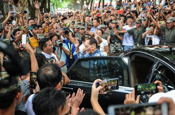 2019年9月16日,湖南农业大学举行2019级本科新生开学典礼,中国工程院院士袁隆平出席开学典礼,受到学生的热烈欢迎。辜鹏博 摄