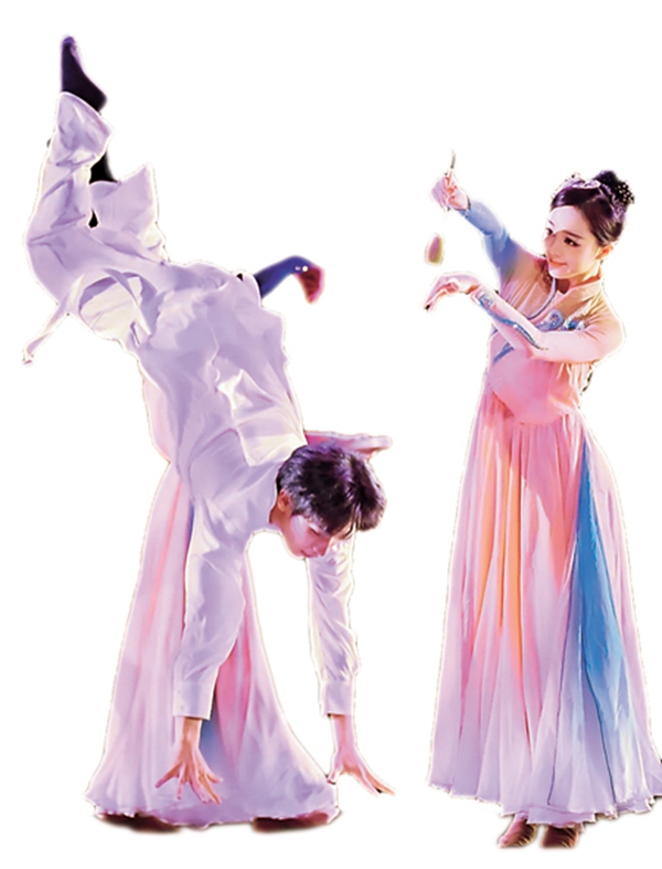 群舞《绣梦·姑苏十二娘》通过时空转换的艺术手法,呈现了一幅流动的江南画卷;女子三人舞《釉变》以明代洪武年间的釉里红岁寒三友纹梅瓶为创作灵感,隐喻人生的淬炼与绚丽;群舞《鹞舞苍穹》在举手投足间展现中国传统文化的魅力,表达了对美好生活的向往和追求……舞台之上展现出的是好一番诗情画意。