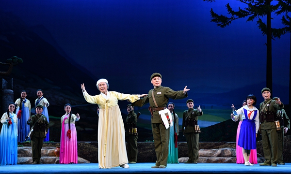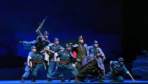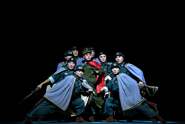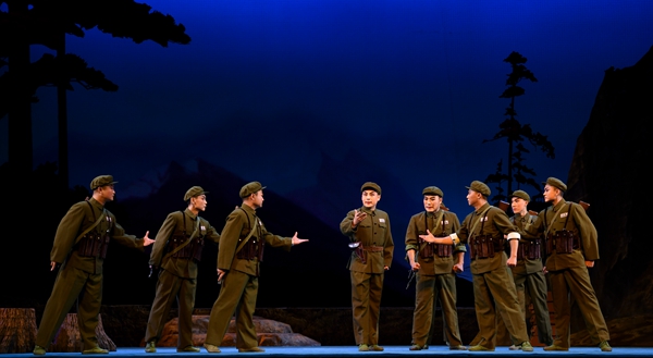 4月5日至6日,山东省京剧院复排创作的红色经典剧目《奇袭白虎团》在北京梅兰芳大剧院演出。图为京剧《奇袭白虎团》剧照。董洁 摄