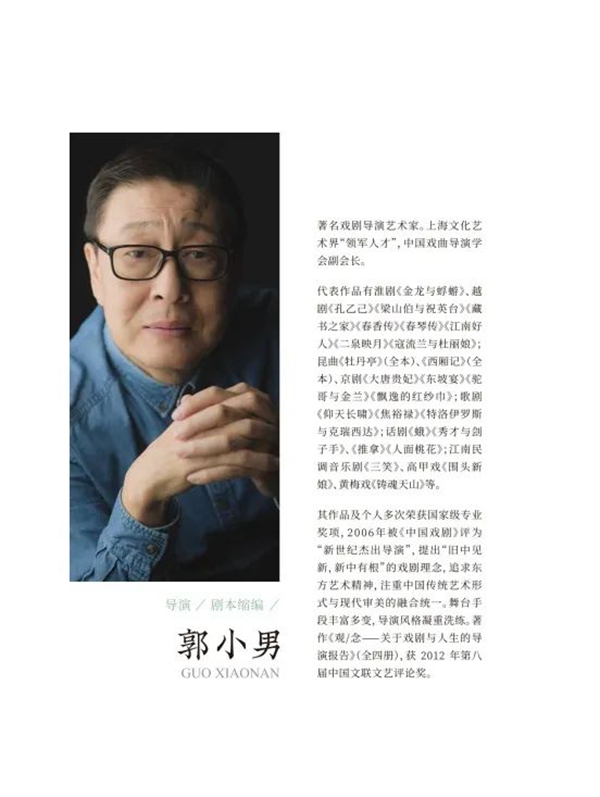 新的精神面貌、新的人文解释、新的表达走向、新的表演方式、新的舞台呈现,郭小男导演以五个“新”定位全本《牡丹亭》。他认为,“不断开掘作品的文化内涵,深入探究作品的精神内涵,是我们这代人重要的文化使命。”在他看来。不偏颇、不简化、不丢失原著文脉,保留和发掘作品中弥足珍贵的价值体系,忠于原著精神,创新表现形式,让全本《牡丹亭》通过本次创排获得正本清源式的回归与重塑,才能更为持久地表达和弘扬原著的精神内涵与价值意义。