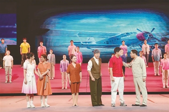 11月14日,由新疆生产建设兵团第八师石河子市党委宣传部主办、石河子市艺术剧院创作排演的音乐诗歌舞台剧《忠诚·传承》专场慰问演出精彩上演,为当地基干民兵带来了90分钟的沉浸式“兵团精神”洗礼。该剧以波澜壮阔的军垦史诗为背景,以兵团第三代张青杨大学毕业后是否返疆的抉择为主线,通过时空交织的叙事手法,深情展现了兵团三代人从艰苦创业到辉煌发展的奋斗历程与精神传承。图为演出剧照。