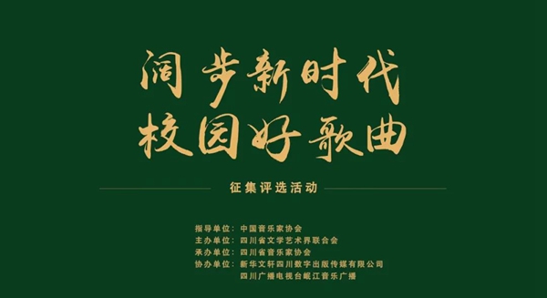 为深入学习贯彻习近平新时代中国特色社会主义思想和党的二十大精神,充分展示广大青少年在新时代新征程路上的新风貌、新形象、新风尚,由中国音乐家协会指导、四川省文学艺术界联合会主办、四川省音乐家协会承办的“阔步新时代·校园好歌曲”征集评选活动,聚焦 “我们的新时代”主题,力争推出一批反映校园生活、青春梦想,健康向上、温暖好听、活泼有趣的适合广大青少年歌唱的校园歌曲。