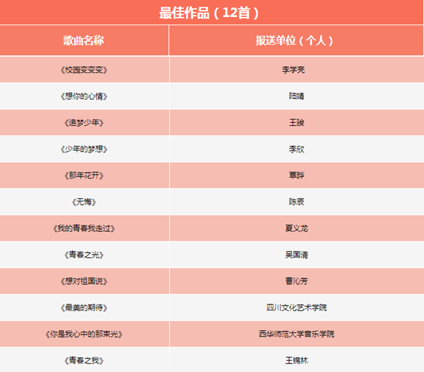 共有12首歌曲获最佳作品