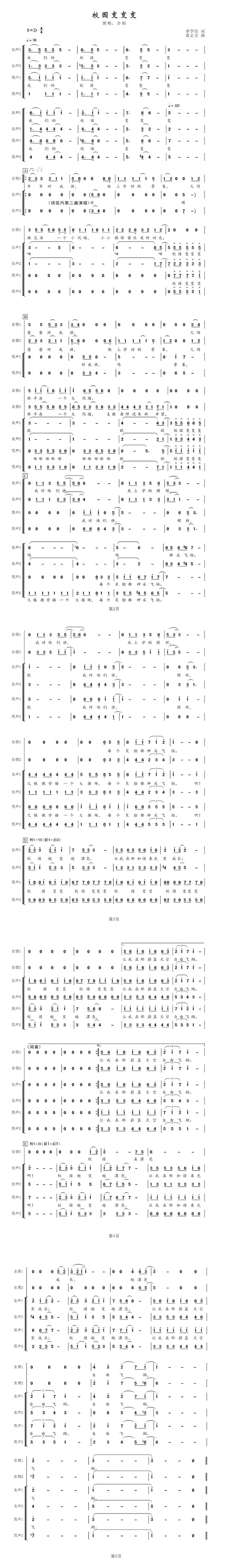 作品以小见大,通过爷爷、爸爸、孩子三代人讲述校园、校舍、校貌发生的可喜变迁,讴歌了均衡教育发展给城乡带来的巨大变化,表达了对校园生活、幸福成长的热爱。作曲为混声四部合唱,旋律轻快优美,领唱、合唱、伴唱及和声形式,让音乐肢体更加饱满,表达出人民群众从生活中获得的幸福感和自豪感。