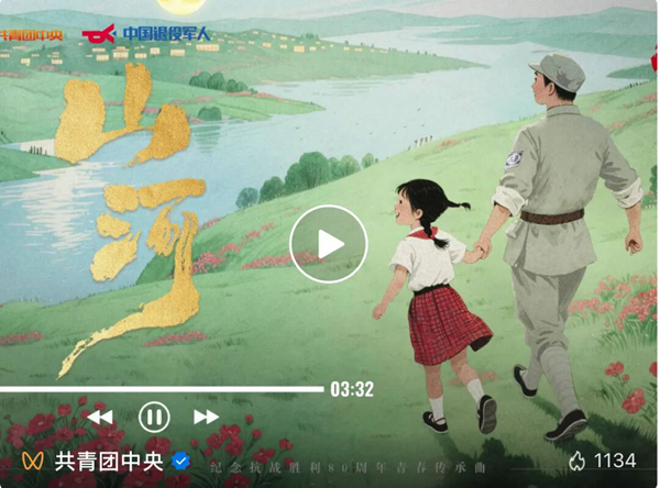 “故事里铭刻是你铭记是我,硝烟里来时是你归时是我。”由共青团中央宣传部、退役军人事务部宣传中心联合出品,温莨作词、瞿子千作曲、黄霄云演唱的纪念抗战胜利80周年青春传承曲《山河》,以山河岁月中薪火相传的精神起笔,记录一场跨越百年的时空对话。