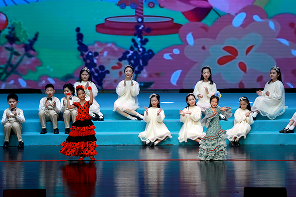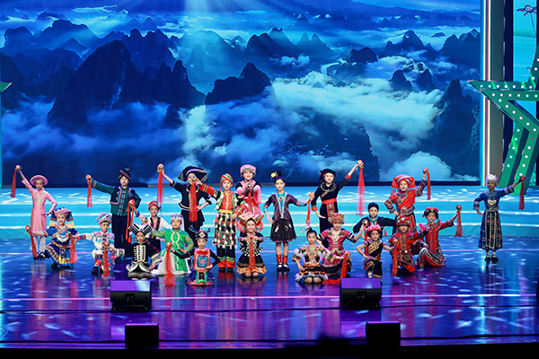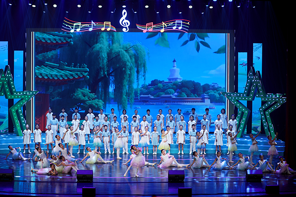 舞台上,小兄妹主持人串联起整场演出。哥哥像一位小导游,妹妹活泼地不停问着“为什么”。两人就像进行一场春日游学,带着观众进行一场边走边唱的旅行。从江南水乡的《好时光》到西湖边的《饮湖上初晴后雨》,从老北京的《春风跑过古城门》到歌唱56个民族的《星星连心一家亲》,小演员们用歌声表达对祖国大好河山的热爱。