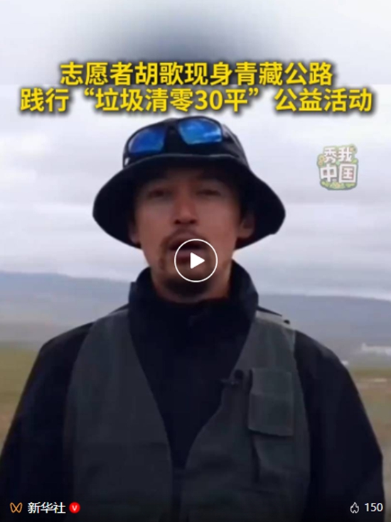 今年环境日期间,胡歌来到青海省青藏公路旁,参加“垃圾清零30平,美丽中国我先行”公益行动。通过多年参与环保志愿者工作,胡歌深切感受到,当人们普遍有了对自然和万千生命的敬畏及尊重,当人们充分意识到了自己当下的每一个行为,不论大小,都与人类未来的生存息息相关,大家自然而然会在行为上做出改变。