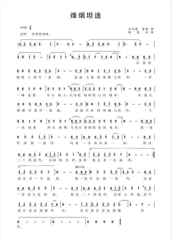 “二十四道拐”主题歌曲《烽烟坦途》歌谱