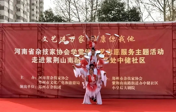 为深入学习贯彻习近平总书记关于学雷锋志愿服务的重要指示精神,响应中宣部、中央文明办的要求,用文艺的力量推动新时代学雷锋志愿服务发展,近日,河南省杂技家协会组织全省杂技界广泛开展“文艺进万家 健康你我他”学雷锋文艺志愿服务主题活动。