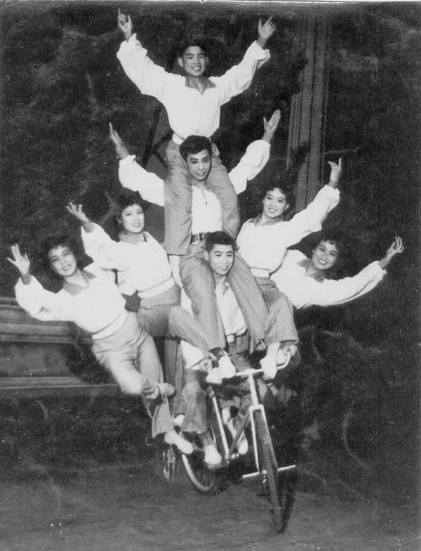 1959年至1966年,是我如海绵吸水般积累成长的七年。在这段时间里,我摸爬滚打,什么活儿都干,同时业务发展上也抓得很紧。那时候主要是练杂技,上海魔术团集结了很多剧团的魔术人才,想演魔术已经挤不进了,于是我就练各种杂技,《水流星》《车技》《杂拌子》《口技》等,这样很快就上台了。我还参演滑稽节目,有时两个节目之间换场需要小丑串场,我就会嘻嘻哈哈演一个小丑。我记得和平中学的同学到大世界来玩,看完以后打趣道:“想不到我们的同学中还有小丑。”他们看不起小丑,但是我的想法不一样,我觉得卓别林也是小丑,当时很出名的苏联演员鲁缅采夫也是小丑,他们都是艺术家,因此我没有他们的那种想法。