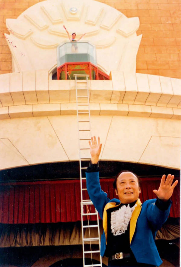 我也实现了很多梦想,比如建造一个专业的魔术舞台。1956年,上海魔术师张慧冲在北京演出时,曾应周总理之约到中南海表演。用餐时,周总理说道:魔术一定要有专业的舞台。周总理很懂魔术,张慧冲回来传达了周总理这番话,我也铭记于心。那时上海近郊佘山修建了一个小型的欧式休闲区,叫欧罗巴乐园,生意红火过一阵后不行了,想找一条出路。乐园方面听说我要去苏州乐园建魔术区,就抢先找到我,邀请我到欧罗巴乐园,并承诺给我建造一个占地九亩的“腾龙魔术城堡”。我确实想要这样一座城堡:里面所有的氛围都是魔术营造的,尤其要有一个专业的魔术舞台,做上很多的机关暗道,能够变各种魔术。舞台的前面是一个水池,水上魔术就在这里表演。对着舞台稍远处有一个高塔,在任何地方“消失”的演员,都可以飞到高塔上去。园方也觉得这个想法很新鲜,我们一拍即合。1996年,腾龙魔术城堡正式建成,包括五个部分:一是魔幻长廊,用于展示魔术历史、魔术人物、魔术知识;二是魔术舞台,采用带着T型台的环形大舞台,前面有水池,对面有高塔,能为观众提供沉浸式表演;三是魔术沙龙,供魔术爱好者交流互动、参加培训;四是魔术饭店,因招商困难未实现,改为魔术商店,卖魔术玩具;五是魔术摄影区,观众可以在这里拍摄悬浮、分身等各种魔术照片,类似今天的网红打卡地,在当时是非常受欢迎的。此后,我便以佘山的魔术城堡为基地,训练队伍、开展艺术活动。第二届上海国际魔术节曾把这里设为分会场,吸引众多魔术师来参观。中央广播电视总台《曲苑杂坛》也曾在这里录过“全景魔术”专题节目。此外,我们还在这里举办了很多科普活动。举一个演出的例子,我创作的《高空水遁》节目中,演员从台前的一个云梯一直爬到舞台上方的高空平台,那里有个大的玻璃水缸。演员进入水缸后,我试验了才知道,有一定距离的水并不是完全透明的。演员进了水缸以后,她靠前面游,隔着玻璃观众看得很清楚,她离开前面,往后面一退人就模糊了,这个“遁人”效果太方便了,看起来好像演员在水缸里转一个身就消失了。然后她就通过暗道从高楼降到地下,从地下滑向高塔,再从塔下升上去进入吊着的那个箱子,这种大范围变化的魔术演起来真是太过瘾了。