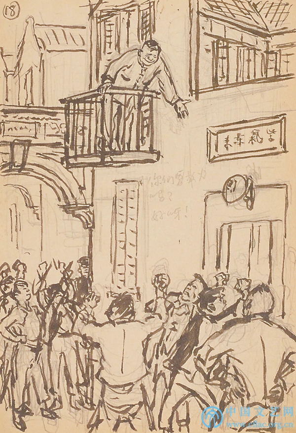 聚焦叶浅予先生的插图艺术、人物造型艺术、中国画的写生与创作方法,对当前中国插图与主题创作研究具有重要而迫切的现实意义。中国国家画院副院长于文江说,观众从展览中可以了解到叶浅予的《北平解放》 《妇女解放》这两幅作品创作的背后故事。一幅经典作品在完成前,画家会经过反复的推敲、琢磨、思考,从展出的创作草图可以看出,叶老做了大量的案头工作,也能看出老一辈艺术家对艺术创作的认真态度,以及他们为艺术献身的虔诚精神,这是后辈画家的学习楷模;当代画家在进行国家重大历史题材美术创作和反映现实生活的主题创作过程中,更需要向经典学习、向大师学习、向前辈学习。