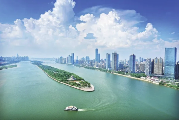 蓝天白云下的橘子洲头与湘江两岸。 (资料照片)湖南日报全媒体记者 郭立亮 摄