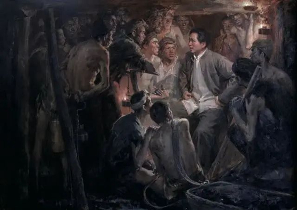 油画 《毛主席与安源矿工》