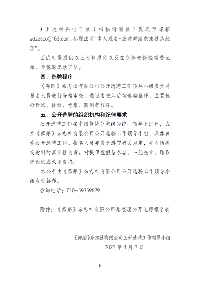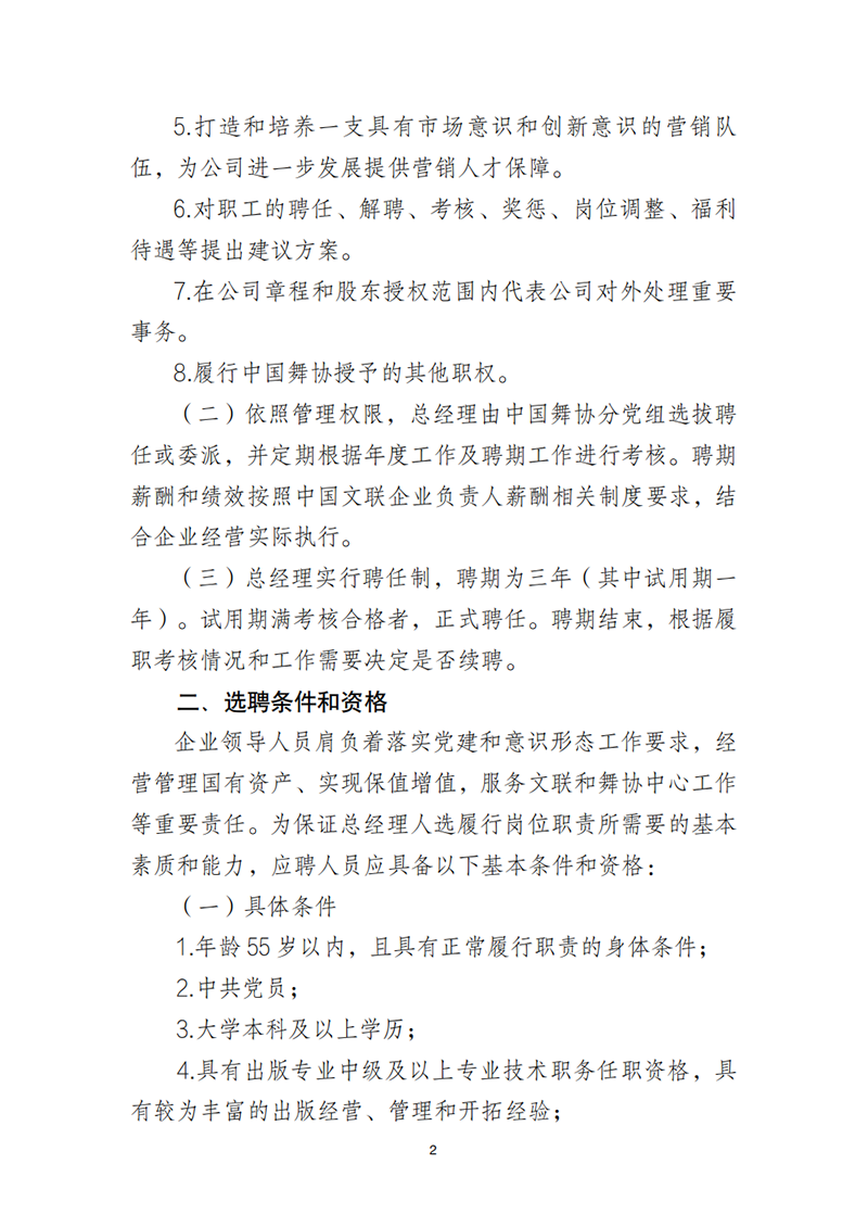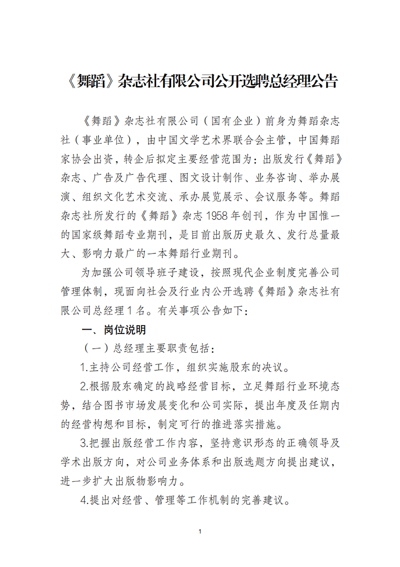 《舞蹈》杂志社有限公司公开选聘总经理公告