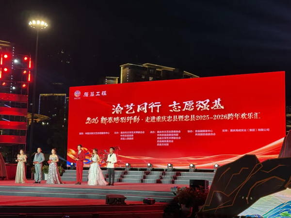 2025年12月31日晚,由重庆市文联、中共忠县县委、忠县人民政府主办,重庆市文志协、中共忠县县委宣传部、忠县文联等单位共同承办的“渝艺同行 志愿强基”2026新春特别行动在重庆忠县忠义广场举行。文艺志愿队伍深入渝东北偏远县城为群众开展惠民演出,是忠县文艺志愿者协会成立后承办的首场志愿服务演出活动。此次活动以2026年元旦、春节为契机,组织动员广大文艺志愿者深入基层开展活动,推动优质文化资源直达基层,扎实推动“强基工程”文艺助力基层精神文明建设行动,更好地满足人民群众精神文化生活需求。