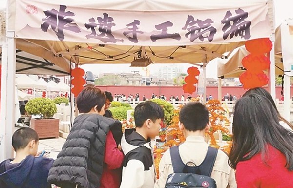 2月17日(农历大年初一),福建漳州古城人头攒动,手工艺人的铝编摊位吸引了许多游客。成年人询问着铝编发财树、如意的价格,孩子们对铝编小动物、手枪爱不释手。由于铝编手枪太受欢迎,老板“无奈”喊出“购买规矩”:“每个小朋友限购一把!”