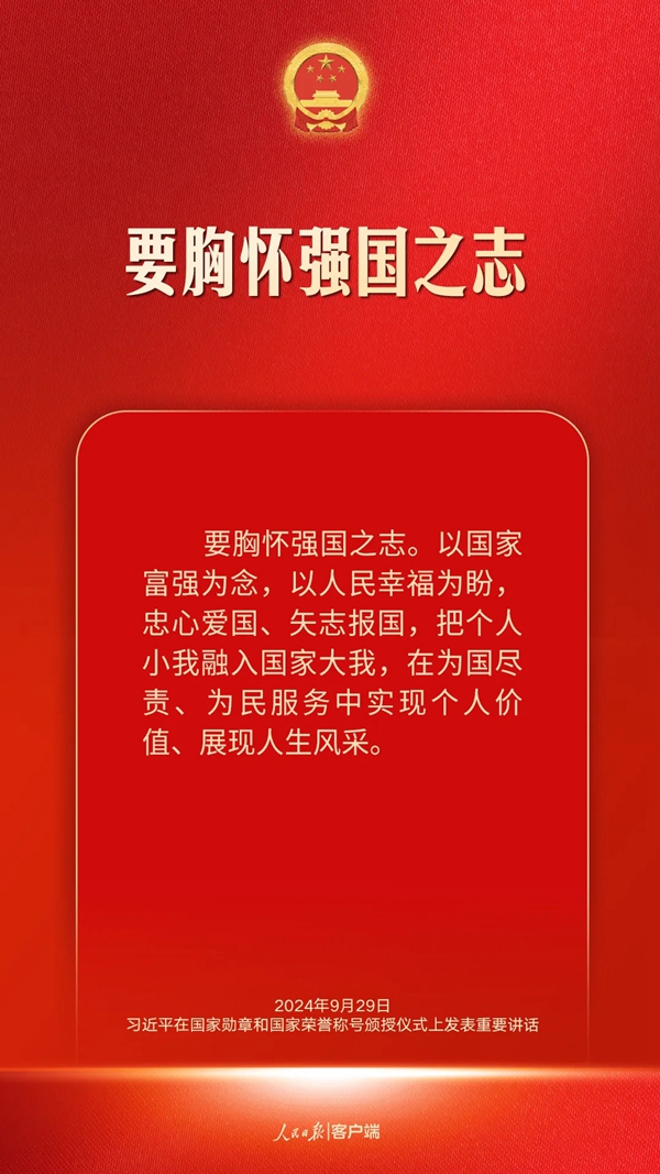习近平总书记指出:“要胸怀强国之志。以国家富强为念,以人民幸福为盼,忠心爱国、矢志报国,把个人小我融入国家大我,在为国尽责、为民服务中实现个人价值、展现人生风采。”