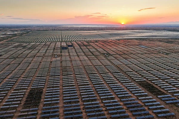 夕阳下的光伏画卷 2025年8月8日拍摄