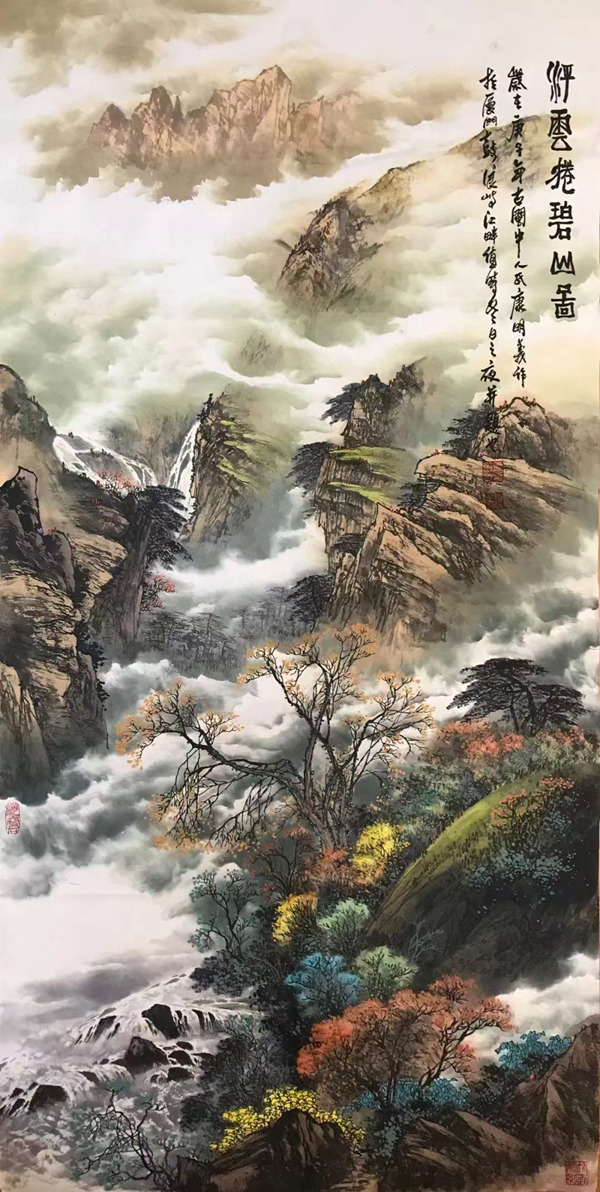 《浮云揽碧山图》138cmx69cm