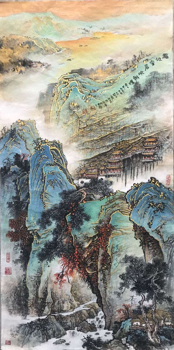 《福地安居映朝晖》138cmx69cm