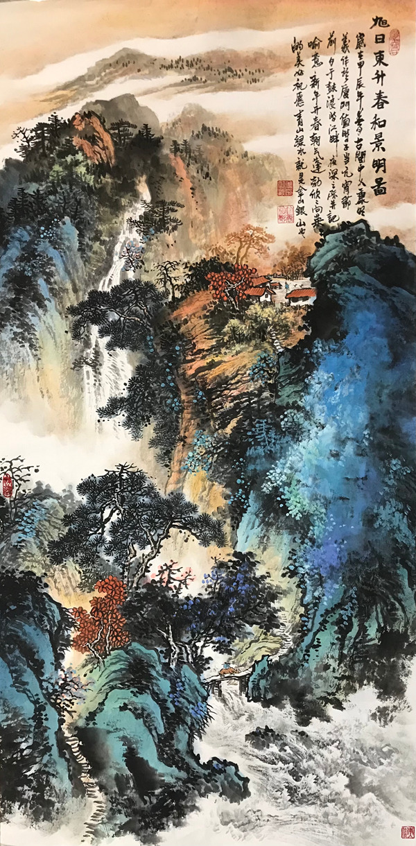 《旭日东升春和景明图》138cmx69cm