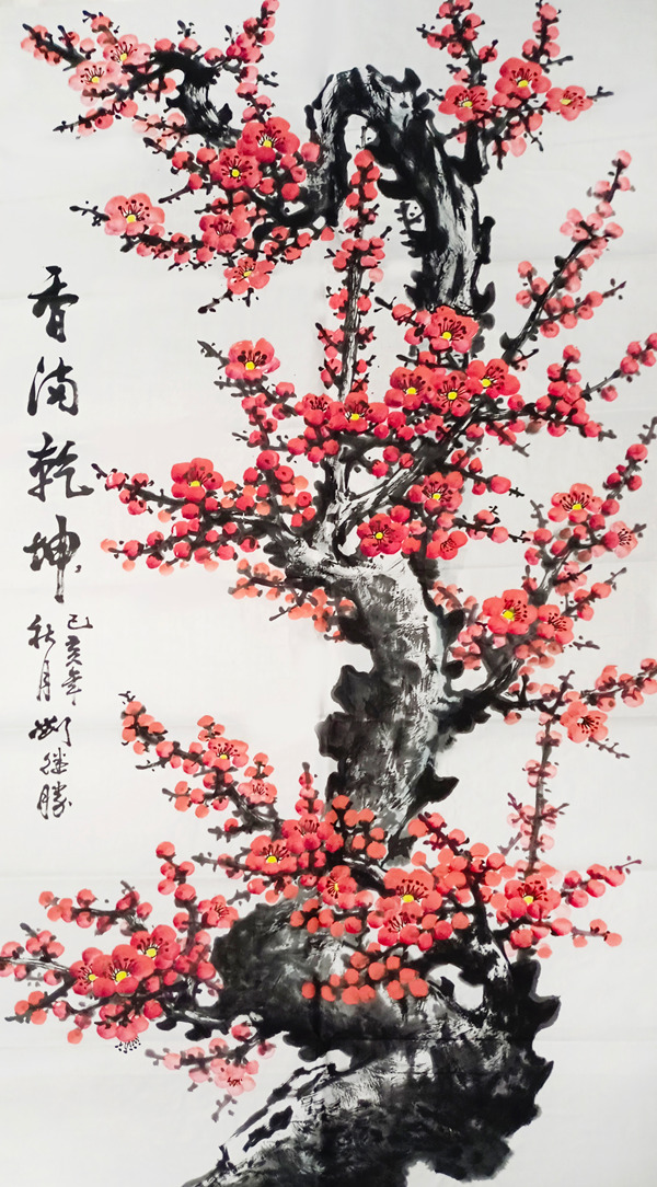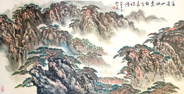 其美术作品以细腻入微的笔触和层次分明的构图著称,山川河流在他的笔下仿佛有了生命,云雾缭绕间,仿佛能听到流水潺潺声和林间的鸟鸣,笔下的梅花更是赋予了深刻的精神内涵,展现了坚韧,积极的人生态度。他的画作不仅是对自然美景的再现,更是对内心情感的表达。