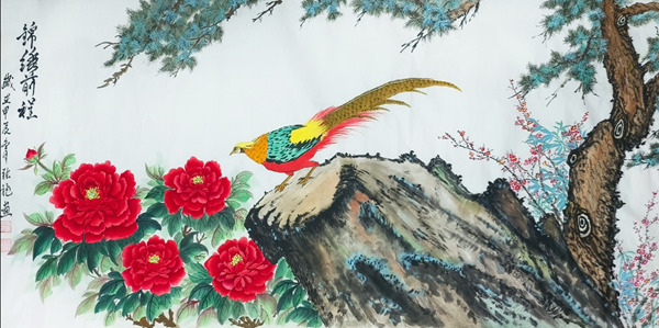 《锦雏献瑞》68cmx136cm