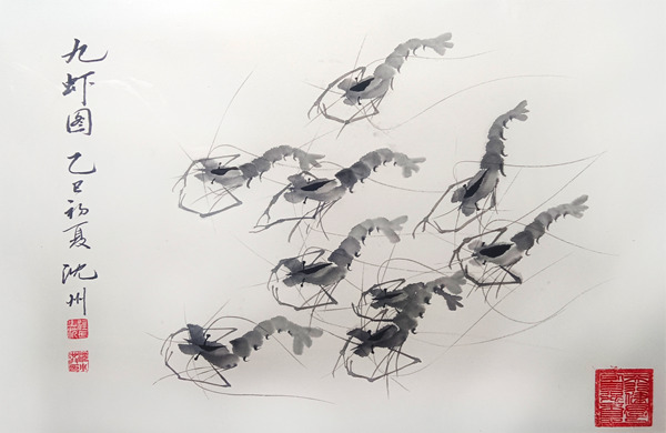 《九虾图》50cmx70cm
