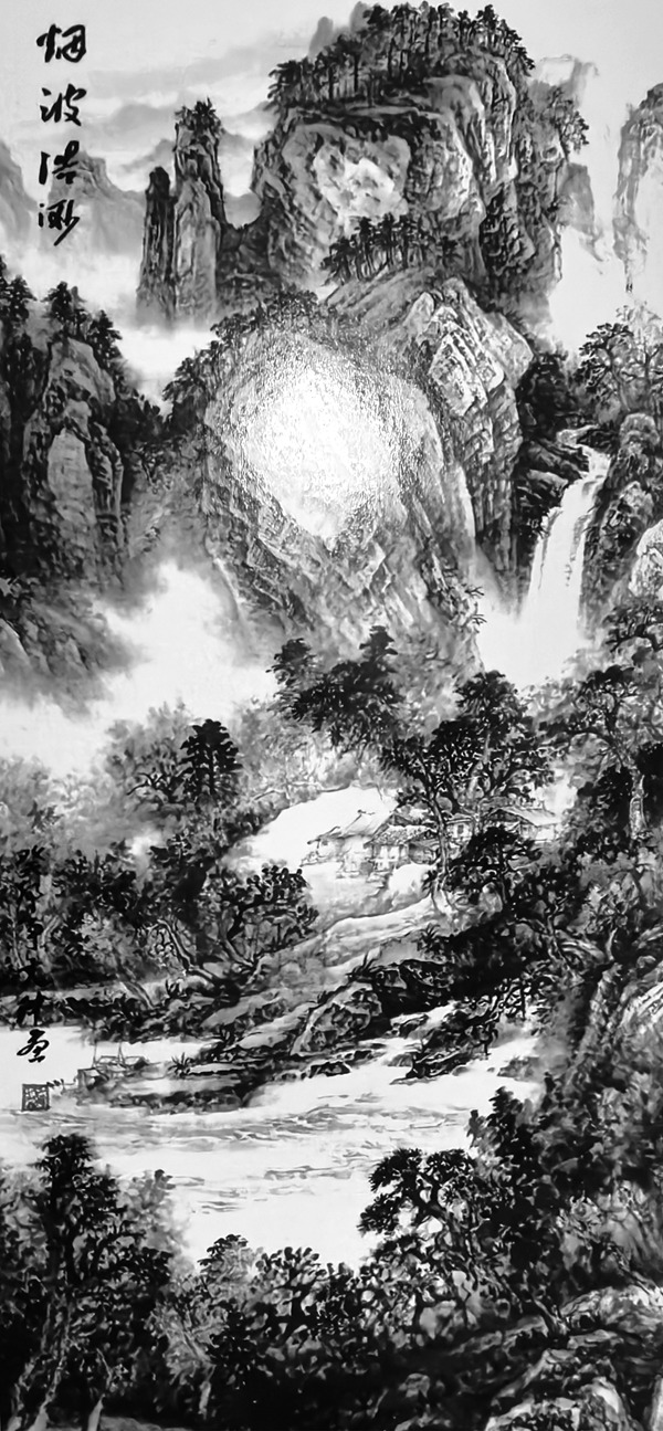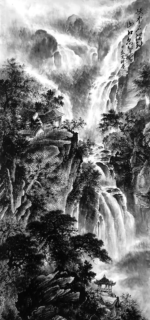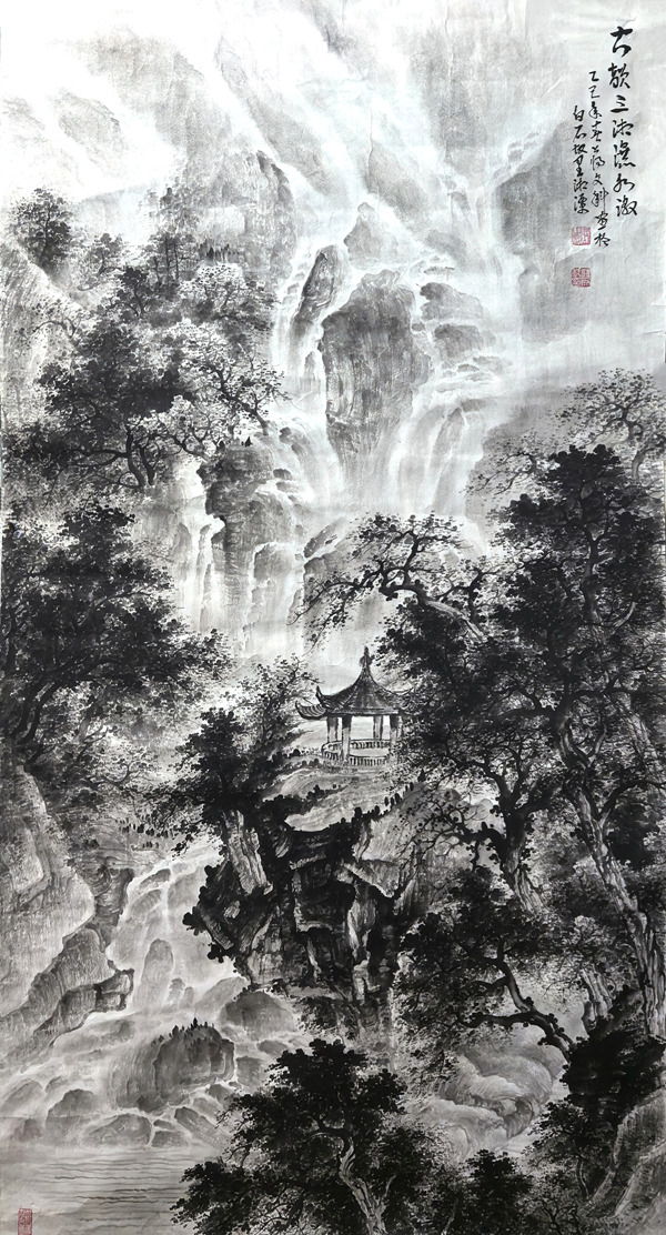 《古韵三湘瀑水激》136cmx68cm
