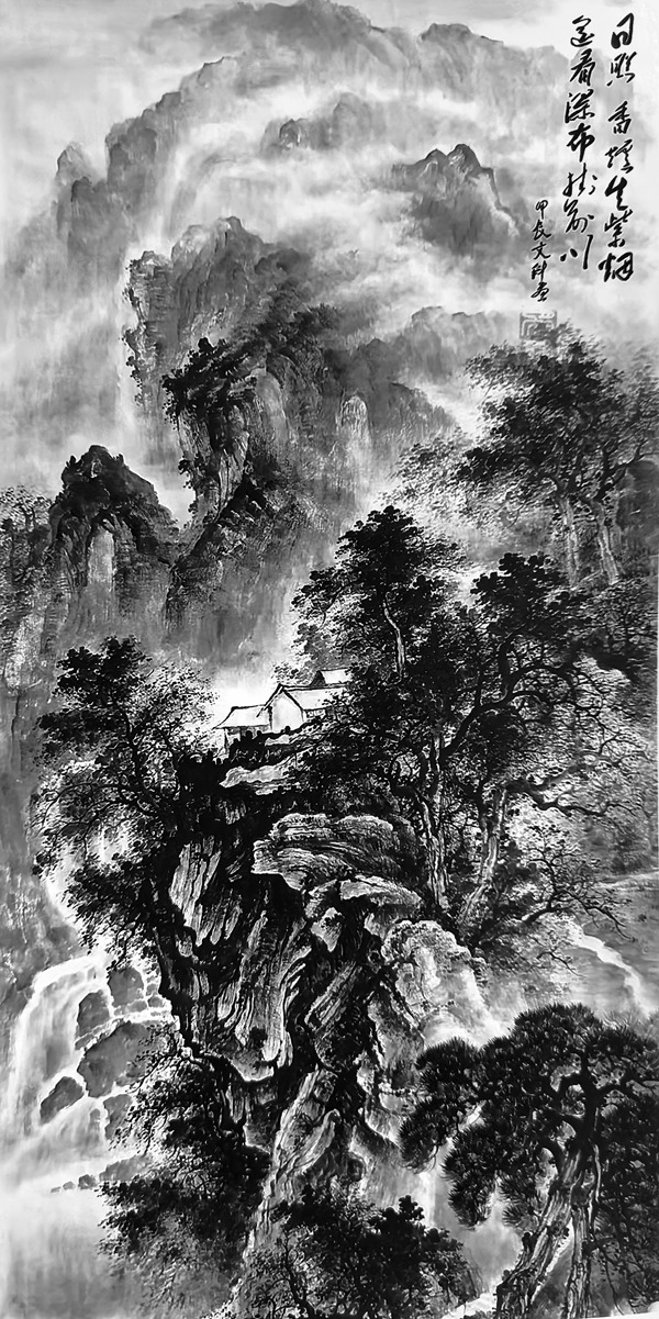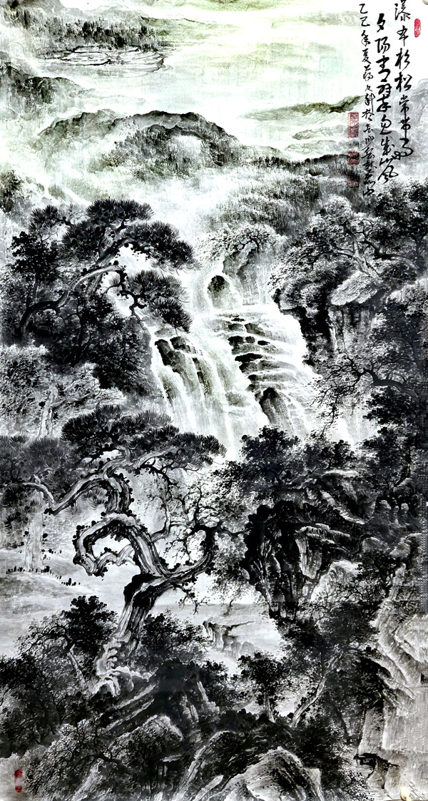 《古松瀑布煮春烟》136cmx68cm