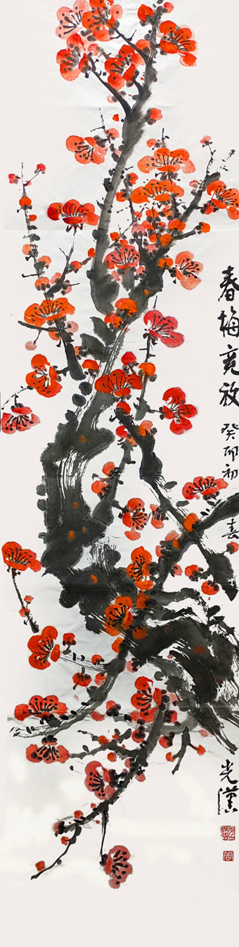 《春梅竞放》136cmx34cm