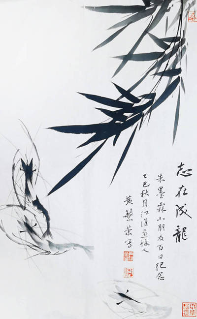 《竹虾图》69cmx35cm
