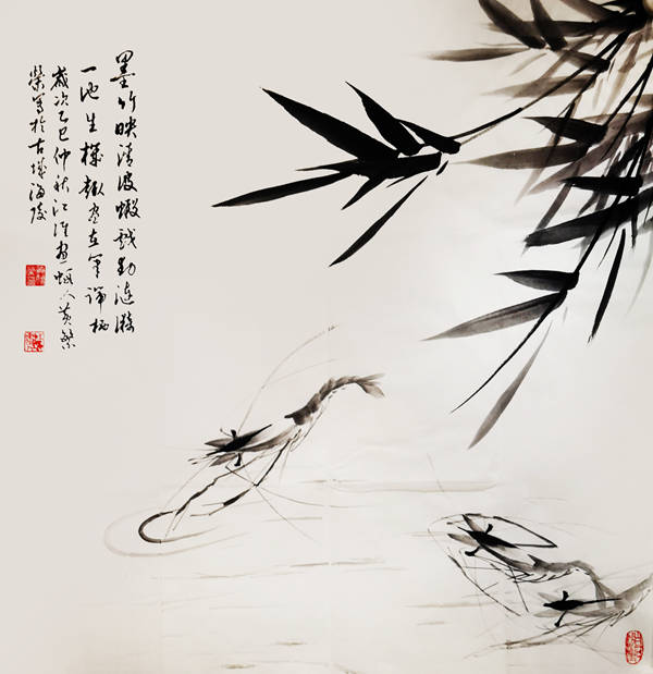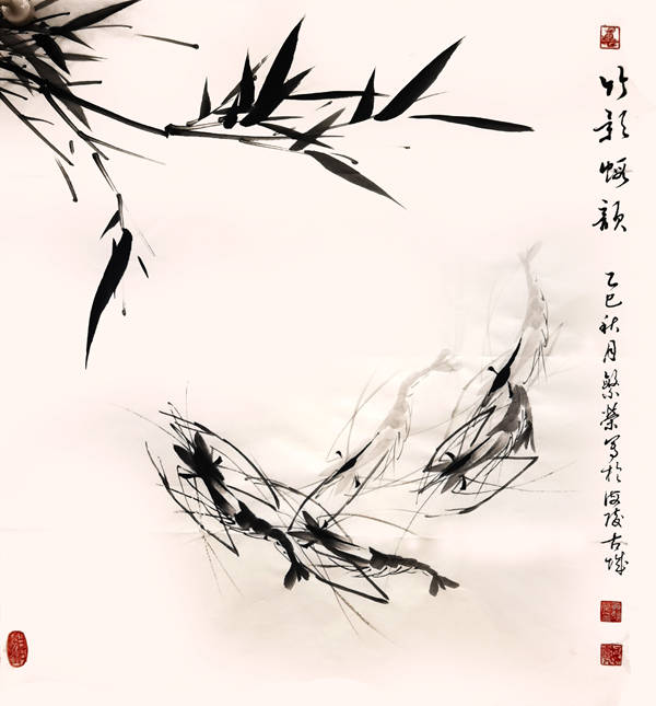 《竹影虾韵》69cmx69cm