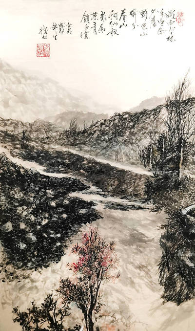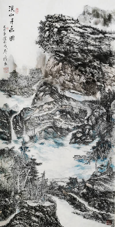 受家中前辈艺术熏陶,他自幼喜欢绘画,深入研究黄宾虹的山水画作,并不断实践练习积墨法,努力向黄宾虹的“五笔”之说靠近。丹青之余,兼攻书法,从二王之法,擅行草,精魏碑。
