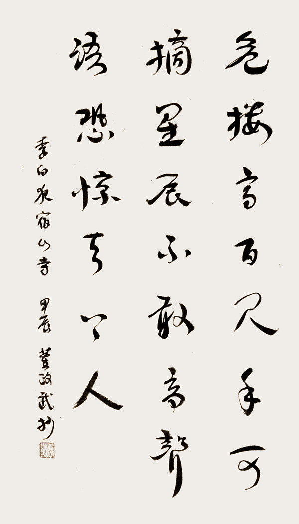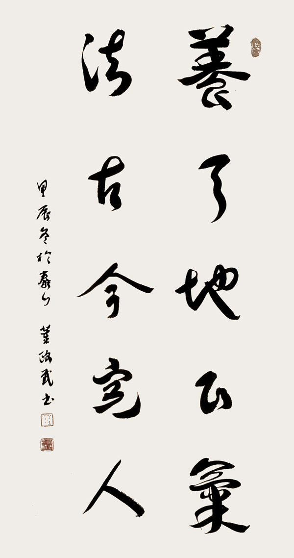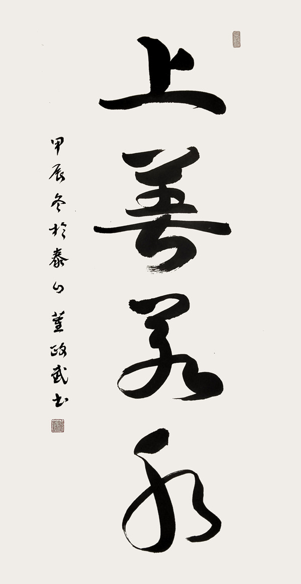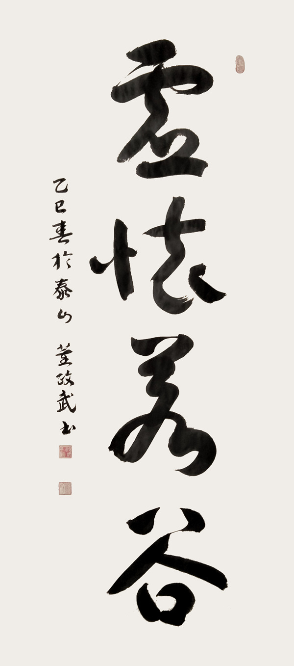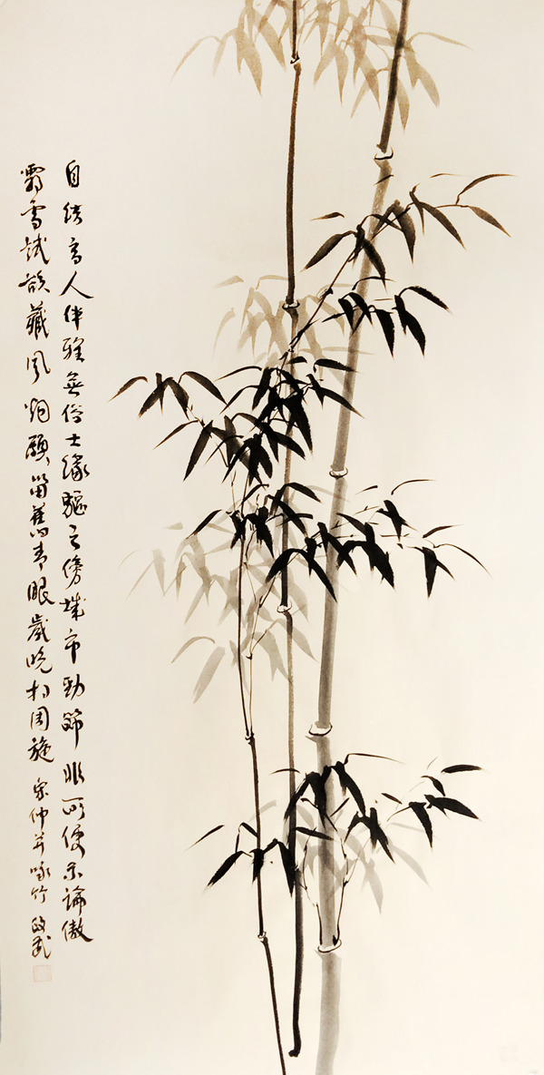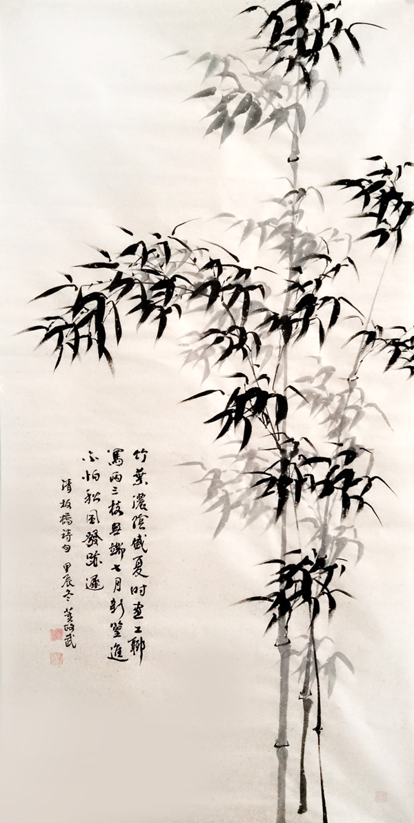 从颜柳入手,并习王羲之、米芾、张猛龙金刚经、张迁等名家碑帖,博采众长,得其法度。又从太极拳中悟出行笔之法,创作出太极金刚体书法,特点是行笔似太极,结体为行草,既有金刚经的雄浑大气厚重,又不失草书的连绵灵动,还有太极的柔中带刚,绵里裹铁。在国画上以画竹为主,学习临习郑板桥等画竹名家作品,得其神韵!