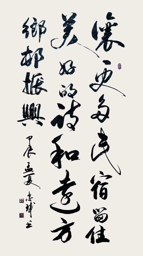 唐忠球坚持书法学习五十余载,博采众长,钟情古风,尤对启功书法深入钻研,逐渐形成了以行草为主的独特风格,其作品注重结构章法合理,点线精妙,既具古朴典雅之韵,又有鲜明时代气息。