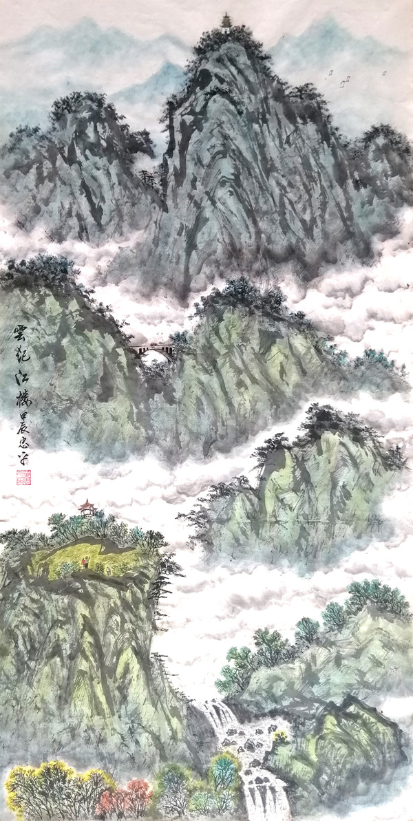 《云起江楼》136cmx68cm