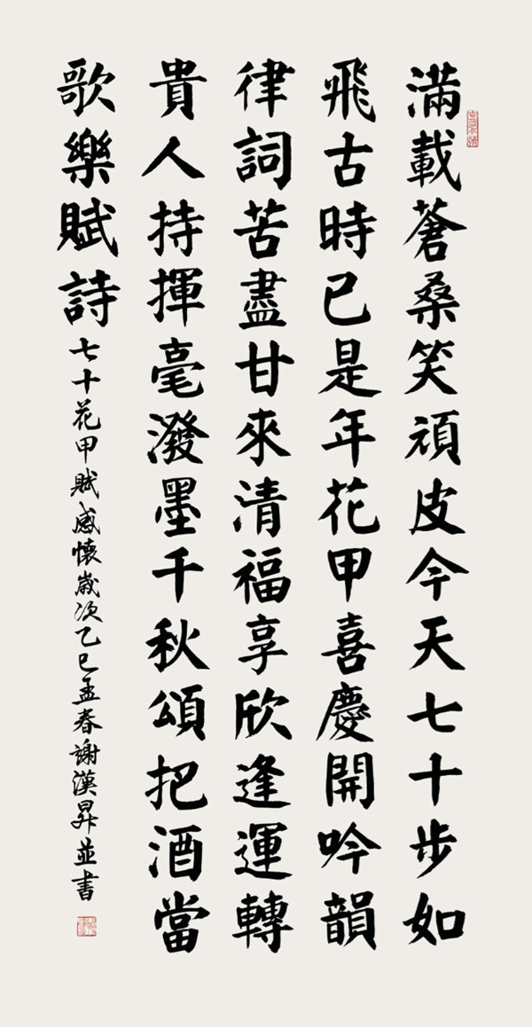 正楷《自创诗〈七十花甲赋感怀〉》138cmx68cm