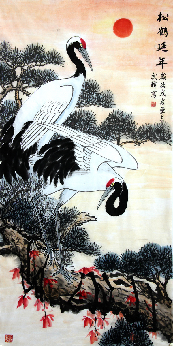 《松鹤延年》136cmx68cm