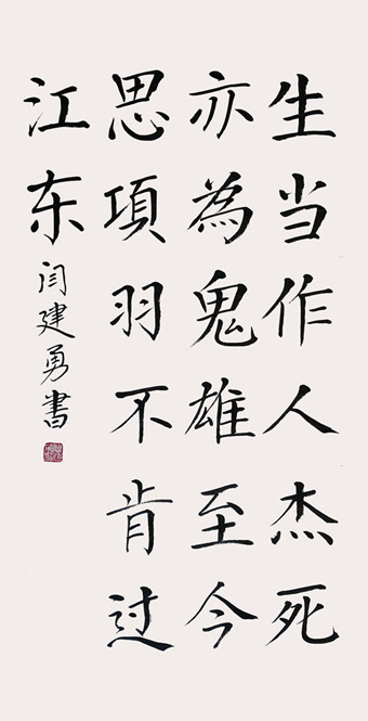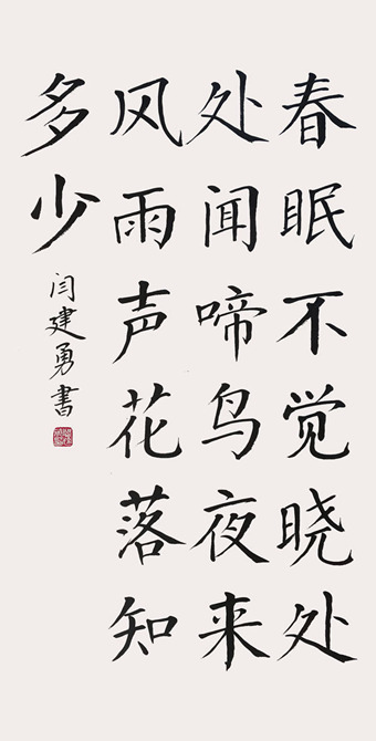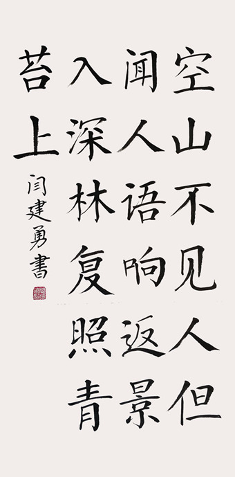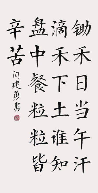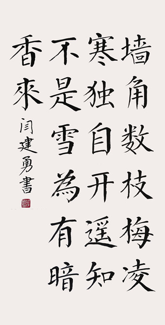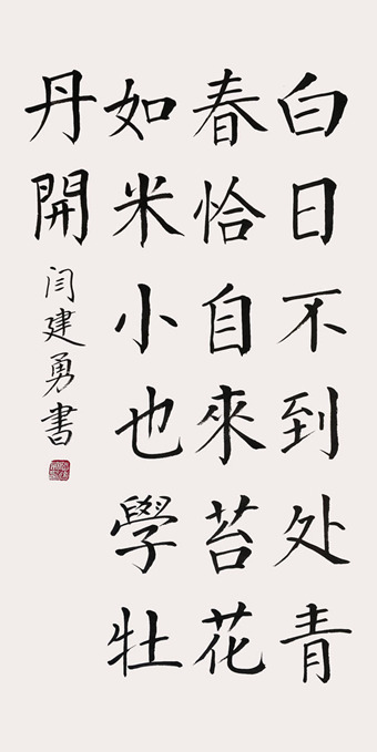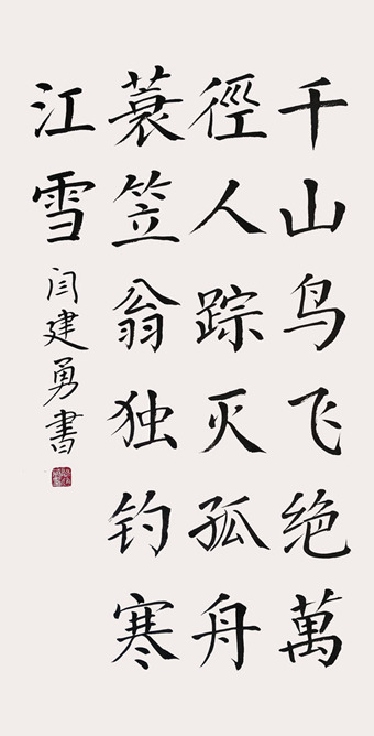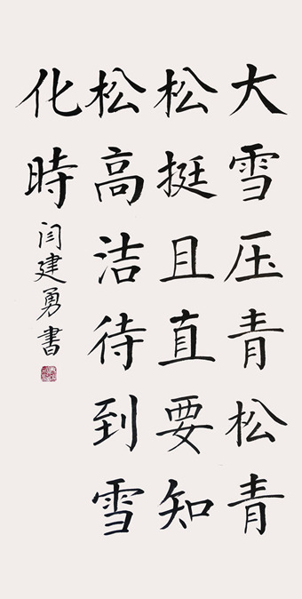 闫建勇,1963年生,河北省沧县人。多年来研习书法创作,擅长楷书,其作品给人以心灵上的慰藉,流露出对真善美的追求,有着对现实生活的深刻体悟。