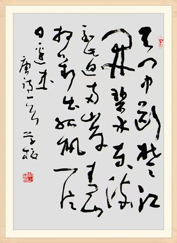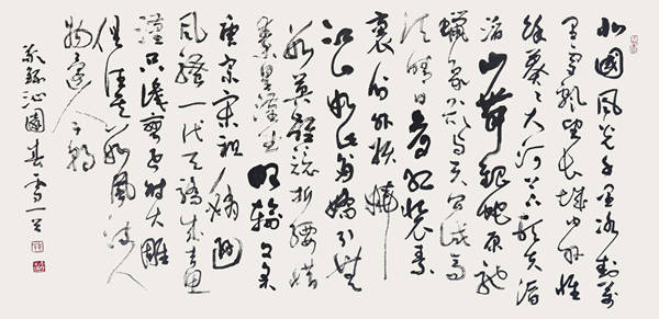 诗词与书法兼修,书法艺术以诗为魂,以书为形,以德行立身。真、草、隶、篆、行皆能,以书谱为基,兼习十七帖、怀素自序帖、黄庭坚、王铎、章草诸帖。笔法中线条提按力求“力透纸背与刚柔并济”的韵味,注意墨色浓淡变化,形成了较好的视觉效果。近十年来,尤在简帛书领域中摸索、研究,在先秦简牍中吸收营养,并融入现代审美。