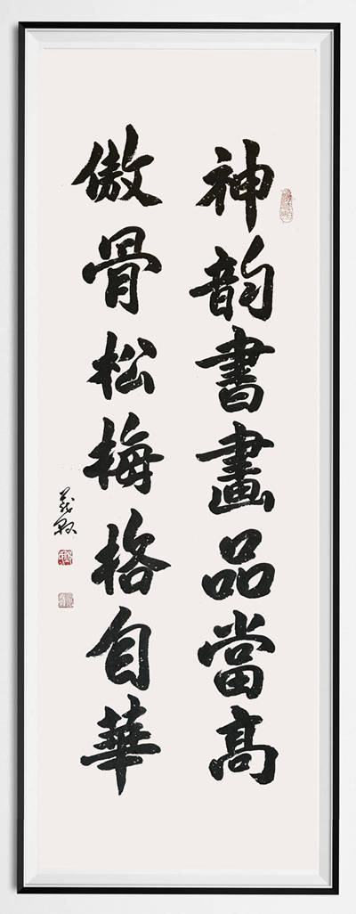 自撰联《神韵书画品当高,傲骨松梅格自华》