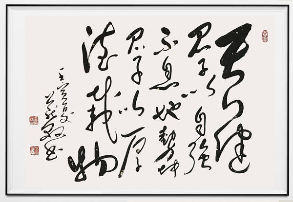 他深耕书法领域,以传承为基、创新为要,创作融入魏碑的古朴与行楷的灵动,形成 “结构奇纵、骨感飞扬”的书风。其笔势兼具力与美、灵与韵。创作多以自撰诗词联句为载体,将传统书道精神与个人心得感悟深度融合。